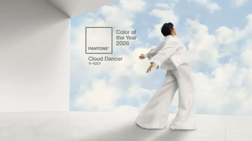 2026rako hautatutako kolorea Cloud Dancer da, zuri leun eta bare bat. Ez da zuri hutsa, ezta zorrotza ere; arnasa hartzera gonbidatzen duen tonua da.